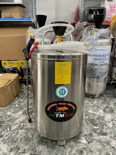 - Thân bình xịt bọt tuyết được làm từ chất liệu inox 304, dung tích bình chứa 80 lít