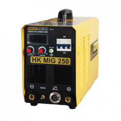 HK MIG 250 thuộc dòng máy hàn Mig, sử dụng nguồn điện 3 pha 380V ứng dụng công nghệ INVERTER. Máy hàn điện tử HK MIG 250 có công suất đầu ra 8.3 KVA mạnh mẽ cho phép làm việc hiệu quả, nhanh chóng, sử dụng cuộn dây từ 1.0 – 1.2mm và bộ cấp dây bên ngoài máy. Điều chỉnh dòng điện ra từ 50 – 250 A. Hiệu suất làm việc trung bình đạt 85%.Máy hàn điện tử HK MIG 250 là sản phẩm đa dụng vì có thể hàn trên các vật liệu inox, sắt… và vật liệu mỏng cho mối hàn tuyệt đẹp với thời gian hàn không giới hạn, mồi lửa nhạy và hệ thống dẫn nhiệt cực tốt.