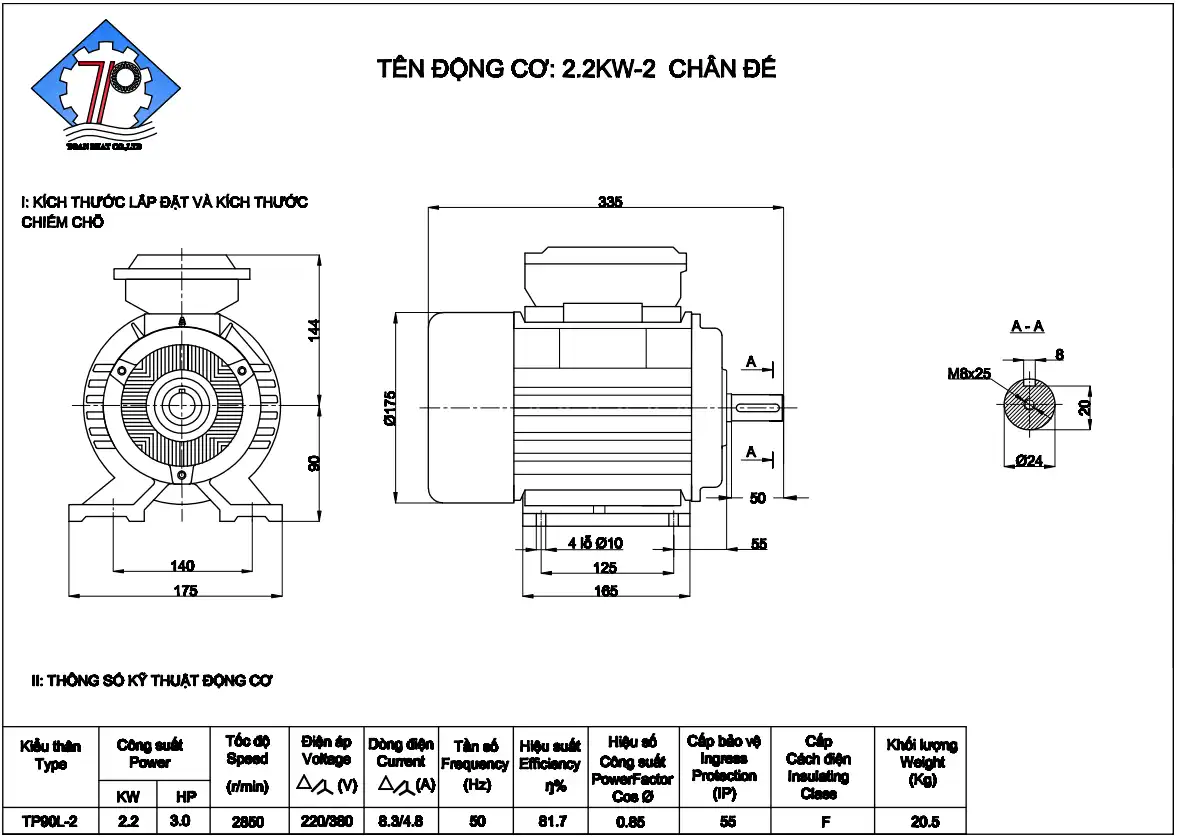 Thông số kỹ thuật motor 3 pha 2.2kw