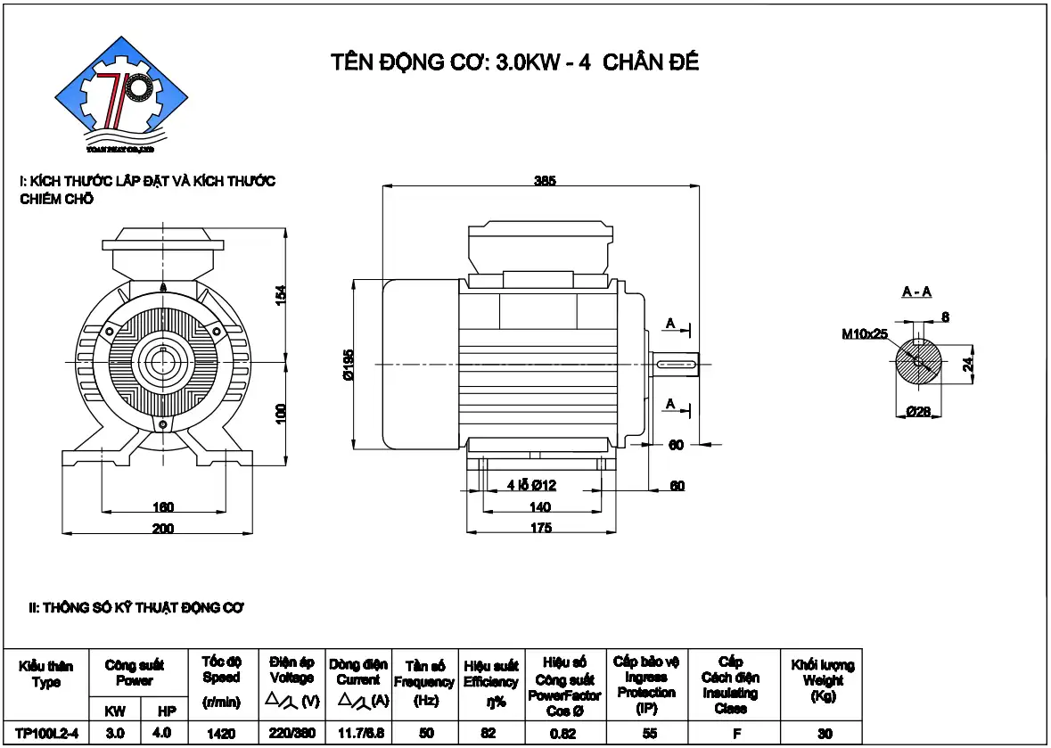 Thông số kỹ thuật mô tơ 3 pha loại tốc chậm